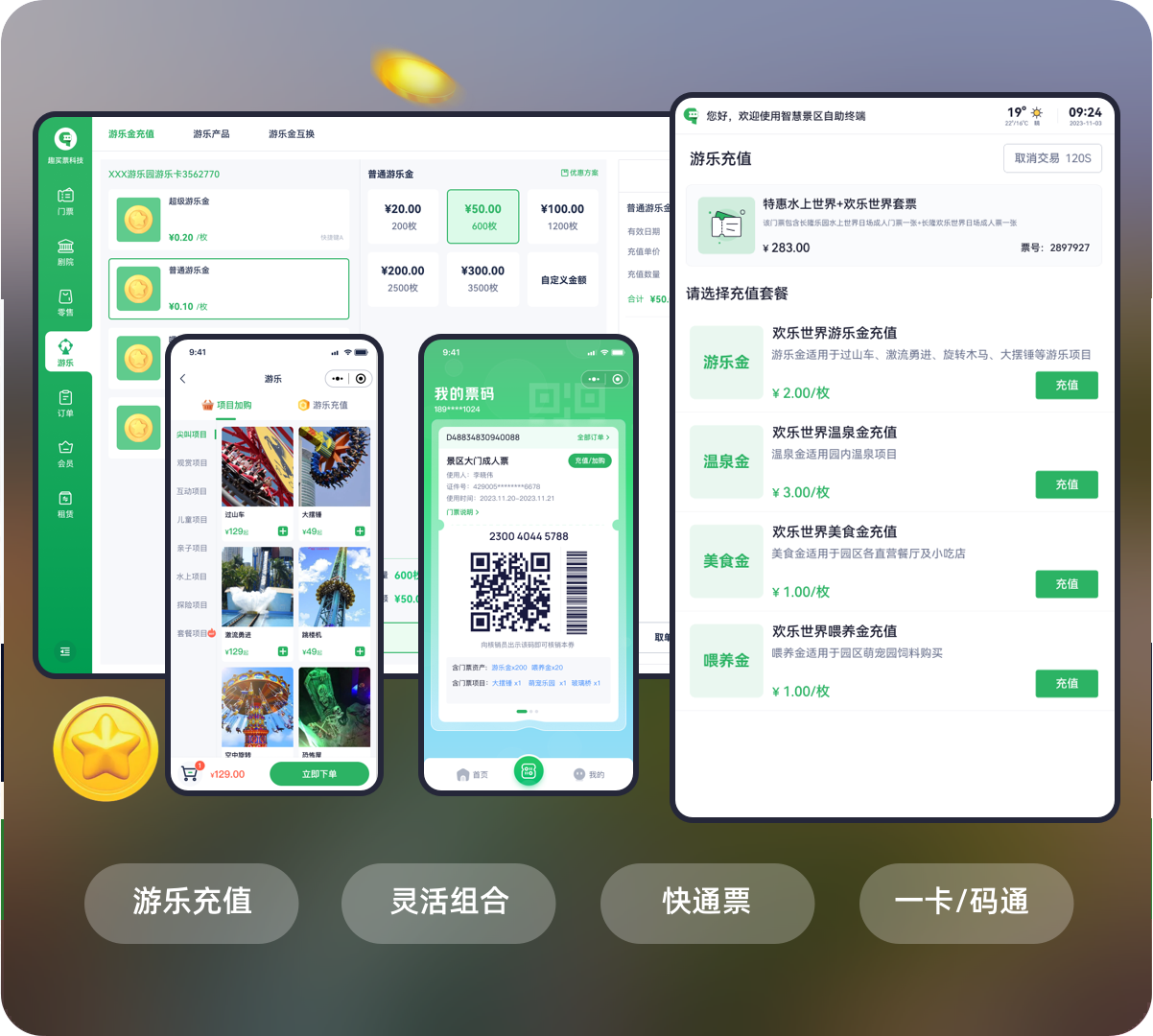 轻松一点,游乐金快速到账。一卡通便捷消费,省去现金烦恼,无论是刺激的过山车,还是温馨的旋转木马,都能畅玩无阻,为您的欢乐之旅保驾护航。